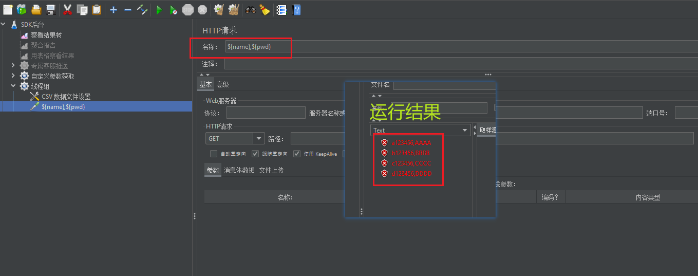 5.添加请求看效果(此处将定义参数名称直接写入名称看效果)