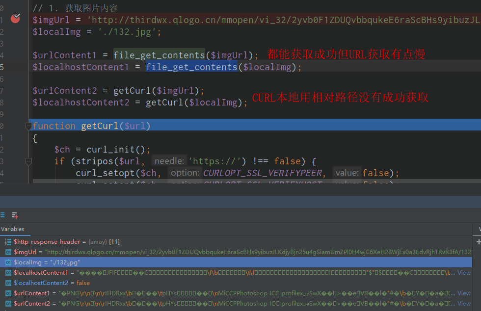 $imgUrl = 'http://thirdwx.qlogo.cn/mmopen/vi_32/Q0j4TwGTfTKjMm8BLuicTicOTXCe2gLo0LoYbpxhWQtwSeIQ8NU1icbrnUBHHr9Iss8dYAuIHiaEZXSenPqRGgAcgQ/132'; // 获取图片内容 $imgContent = getCurl($imgUrl); // 加载到图片资源 $imageSource = imagecreatefromstring($imgContent); // 将图片资源保存成图片 $path = './head.jpg'; imagejpeg($imageSource, $path, 90); // 销毁图片资源 imagedestroy($imageSource);