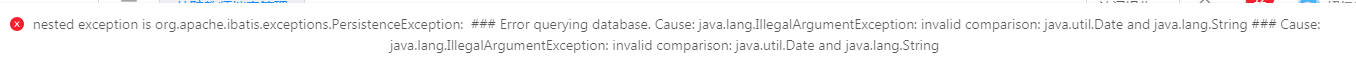 查询条件是时间类型:因为mybatis 3.3.0中对于时间参数进行比较时的一个bug. 如果拿传入的时间类型参数与空字符串''进行对比判断则会引发异常. 所以在上面的代码中去掉该判断, 只保留非空判断就正常了。不然报下面的异常: