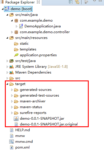 总结:工程的target目录就是打包之后存放jar包的物理位置。如下所示: