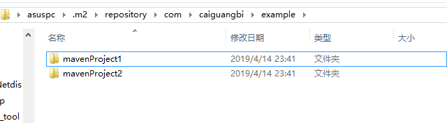 一开始C:\Users\asuspc\.m2\repository本地仓库下是没有项目mavenProject1和mavenProject2的,