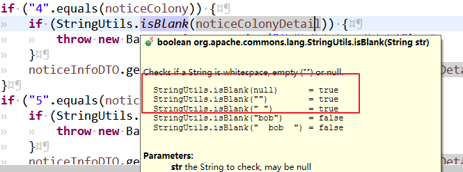 StringUtils的isBlank()方法可以一次性校验这五种情况,返回值都是true,否则为false