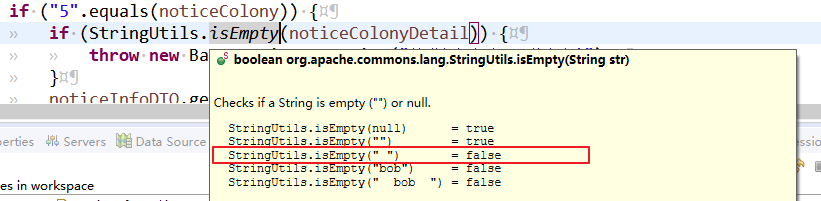 StringUtils.isEmpty(" ") = false //注意在 StringUtils 中空格作非空处理