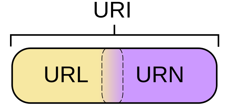 URN = Universal Resource Name 统一资源名称,通过特定命名空间中的唯一名称或ID来标识资源。