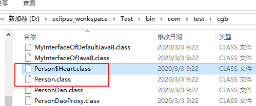 Person类经过编译之后,源文件生成两个字节码文件,其中内部类仍然是一个独立的类,在编译之后的内部类会被编译成独立的.class文件,但是前面是被加上外部类的类名和$符号;比如:Person$Heart.class是分别为: