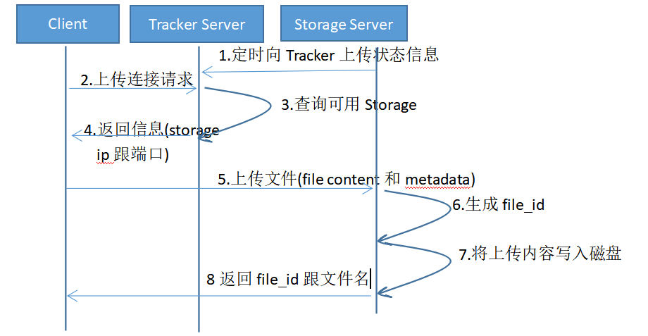 1.Storage Server向Tracker Server定时发送上传状态信息