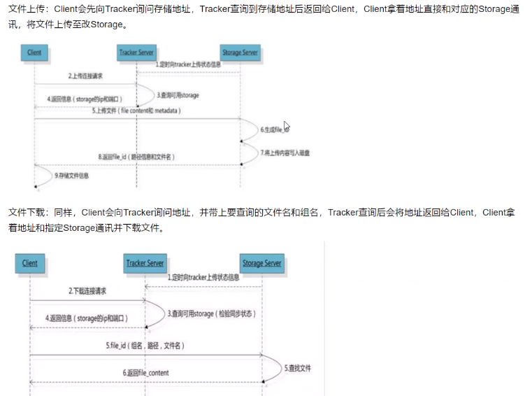 需要说明的是,client为使用fastdfs服务的调用方,client也应该是一台服务器,它对Tracker和storage的调用均为服务器间的调用。