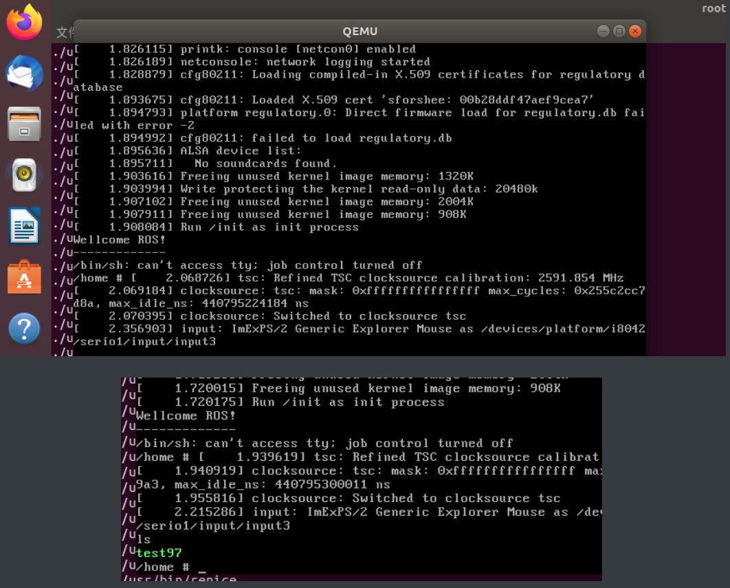 • 测试挂载根⽂件系统,看内核启动完成后是否执⾏init脚本