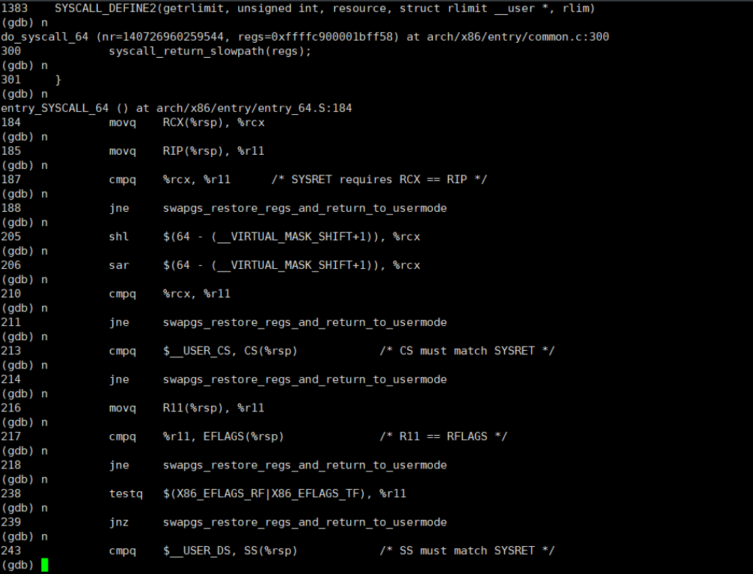 • (gdb) b __x64_sys_getrlimit
