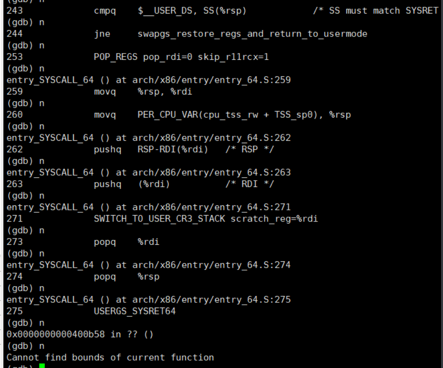 - 通过gdb跟踪该系统调用的内核处理过程