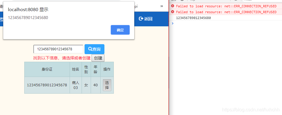 按照正常逻辑,点击选择时,应该弹出123456789012345678,但是运行起来却是这样的: