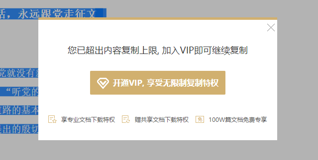 有时候需要在百度文库中,复制一些句子来写一些论文,或者其他用途,但是百度文库页面中,复制比较长的内容时,就会提示需要加入VIP