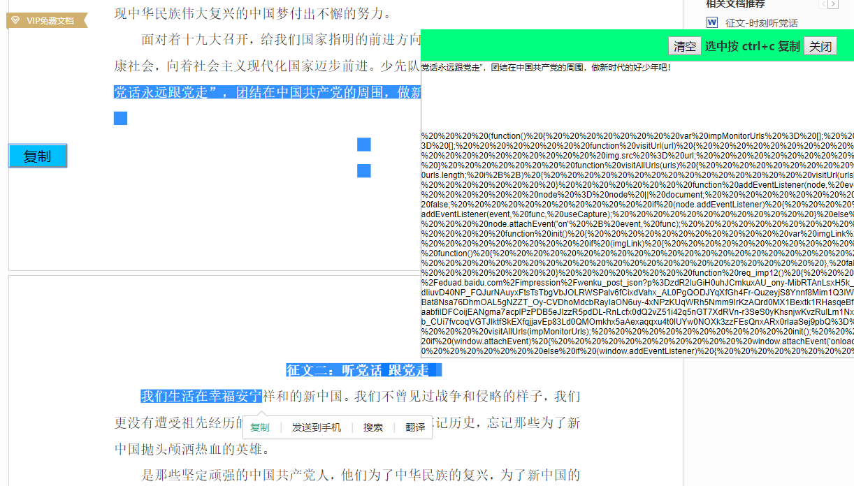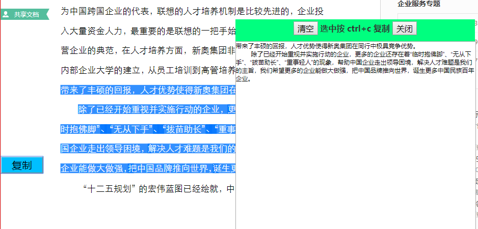 如果想要网页中的几句的内容,不需要再下载整个文档了。