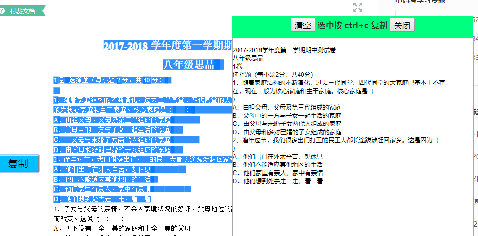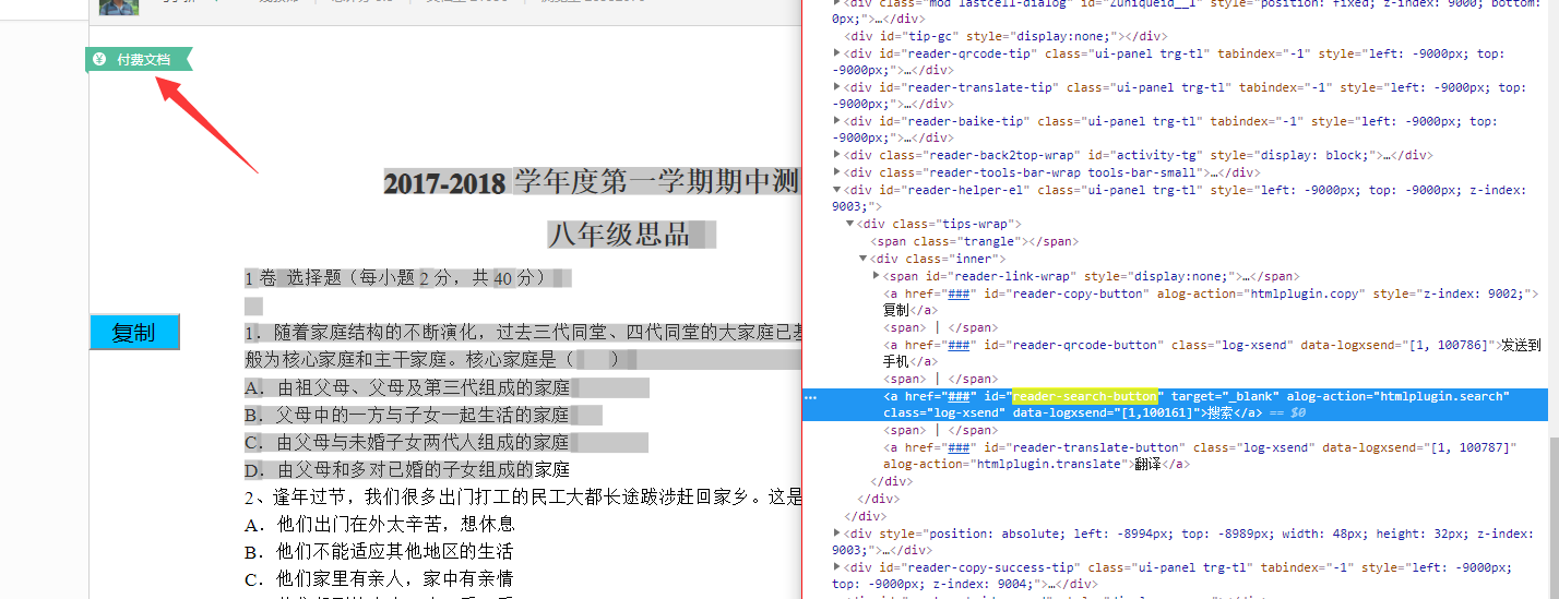 这个刚开始是想直接改变其限制复制的js内容,把限制去掉。但是经查看js发现,它的显示的js和限制的js是放到同一个js文件里的,而且这个js还用到其他js的定义的东西,越看越复杂,还是直接从页面的显示上下功夫吧。。。