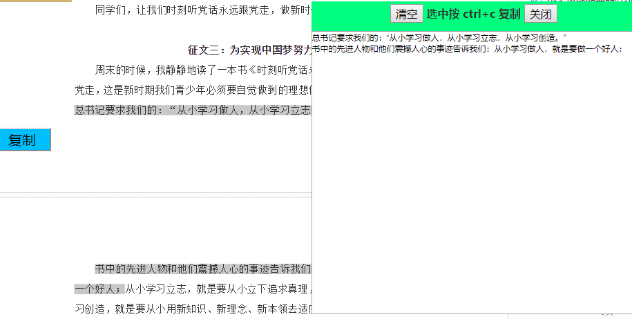"<div style='margin-top: 1%;text-align: center;font-size: 16px;font-weight: bold'><button onclick='javascript:document.getElementById(\"content\").value = \"\"'>清空</button><span> 选中按 ctrl+c 复制 </span><button onclick='javascript:$(\"#showcopy\").hide()'>关闭</button></div>" +