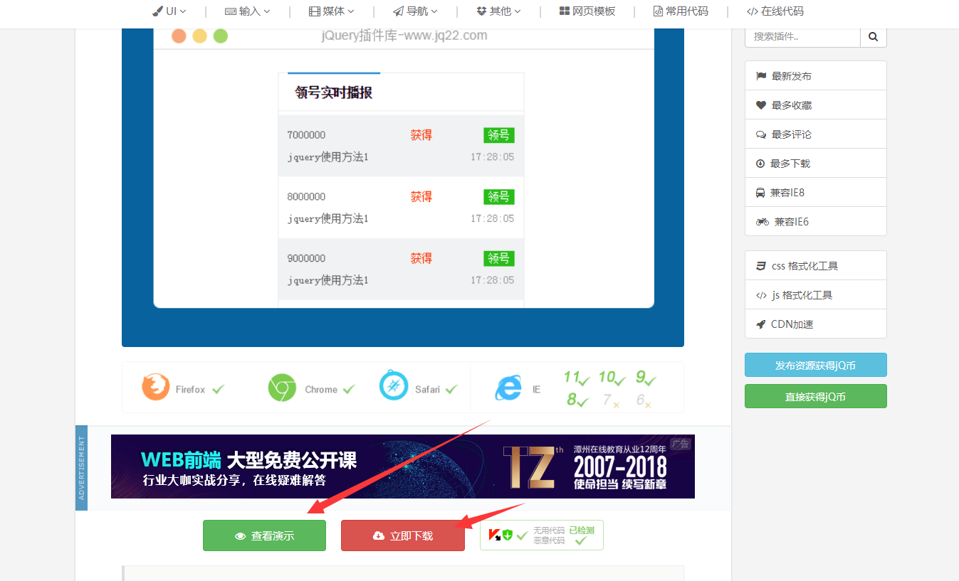 下面以 http://www.jq22.com/ 这个网站为例,介绍如何下载特效。