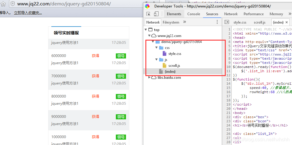 很显然,这个页面还有其他的元素,并非一个特效demo的原始地址,可以打开F12看源码: