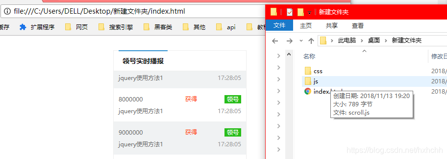 接下来,在本地上建立一样的目录结构,新建 一个style.css、 scroll.js、 index.html,