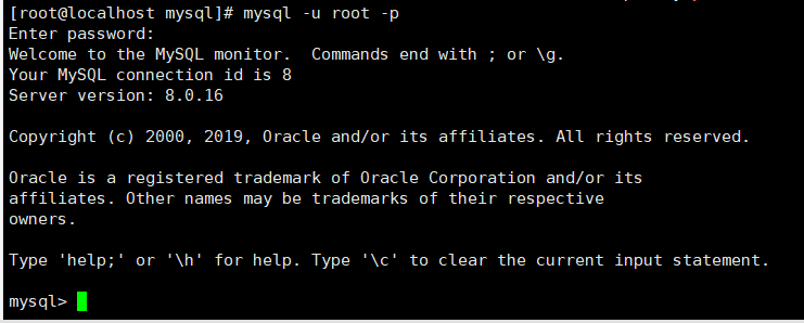 rpm -ivh mysql-community-common-8.0.16-2.el7.x86_64.rpm rpm -ivh mysql-community-libs-8.0.16-2.el7.x86_64.rpm rpm -ivh mysql-community-client-8.0.16-2.el7.x86_64.rpm rpm -ivh mysql-community-server-8.0.16-2.el7.x86_64.rpm