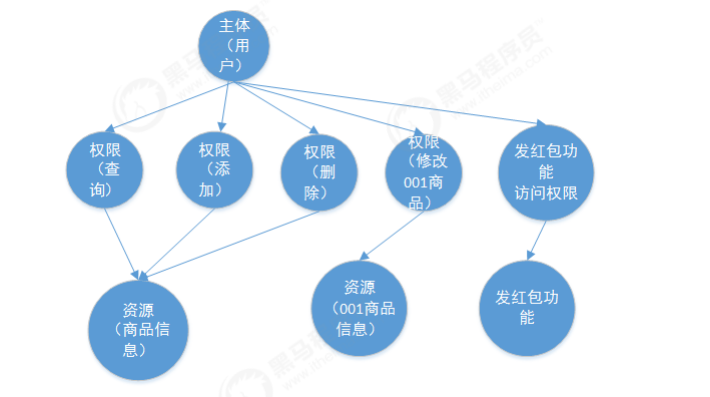 如用户查询权限、用户添加权限、某个代码方法的调用权限、编号为001的用户的修改权限等,通过权限可知用户