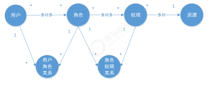 主体(用户)、资源、权限关系如下图: