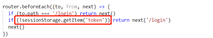 - 用户登录成功后我们将后台返回的用户token信息存储至sessionStorage中