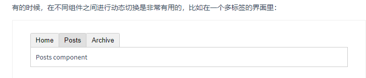 上述内容可以通过 Vue 的 <component> 元素加一个特殊的 is attribute 来实现: