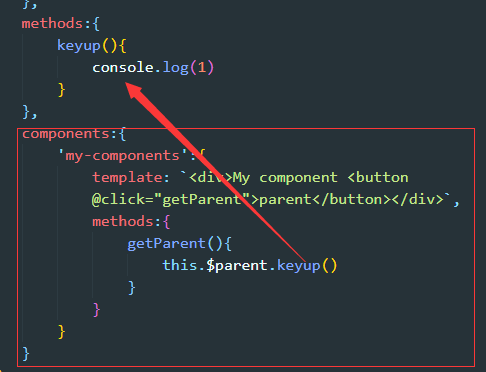 (1)直接在子组件中通过this.$parent.event来调用父组件的方法