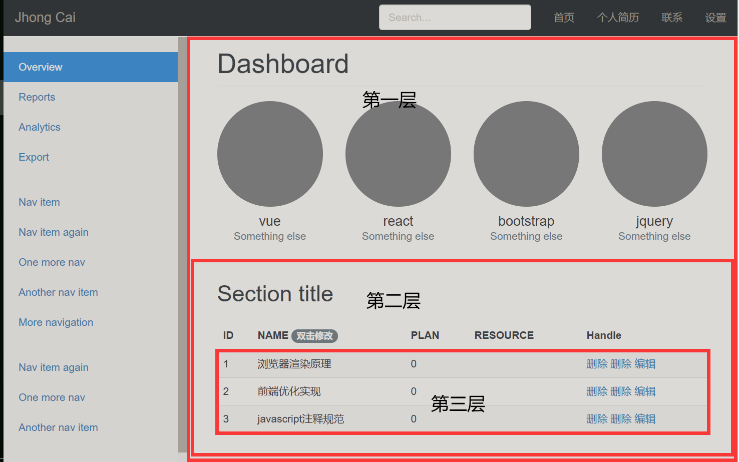 数据,方法事件在第一层,删除按钮在第三层