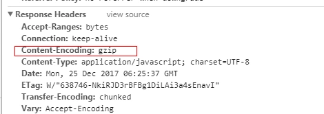 浏览器请求资源文件时会自动带一个Accept-Encoding的请求头告诉服务器支持的压缩编码类型。