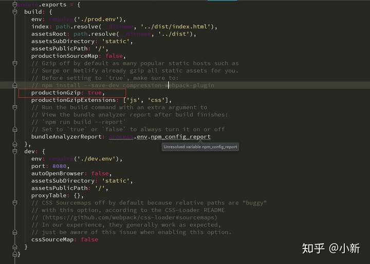 由于项目是通过vue-cli搭建的,所以就直接通过webpack来配置了。 修改config目录下的index.js,开启gzip