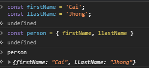 const person = { firstName: 'Stephen', lastName: 'Curry', }; const {firstName, lastName} = person; console.log(firstName + ' ' + lastName);