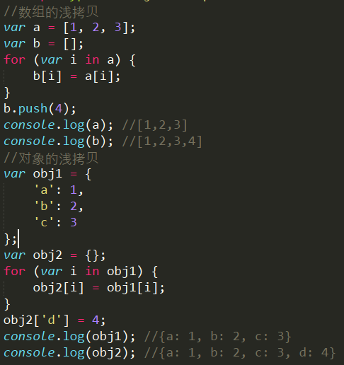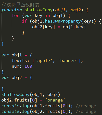 浅拷贝解决就是先设置一个新的对象obj2,通过遍历的方式将obj1对象的值一一赋值给obj2对象。