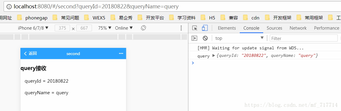 //query传参,使用name跳转 this.$router.push({ name:'second', query: { queryId:'20180822', queryName: 'query' } }) //query传参,使用path跳转 this.$router.push({ path:'second', query: { queryId:'20180822', queryName: 'query' } }) //query传参接收 this.queryName = this.$route.query.queryName; this.queryId = this.$route.query.queryId;