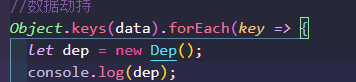 dep 是 Dep构造函数的实例化,对vm中的数据进行遍历,一个数据便是一个订阅器,监管他下面的所有订阅者(就是视图层引用绑定的数据)。