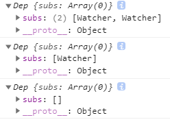 1. 定义主题对象Dep,对象中有addSub和notify两个方法,前者负责向当前对象中添加订阅者,后者轮询订阅者,调用订阅者的更新方法update()