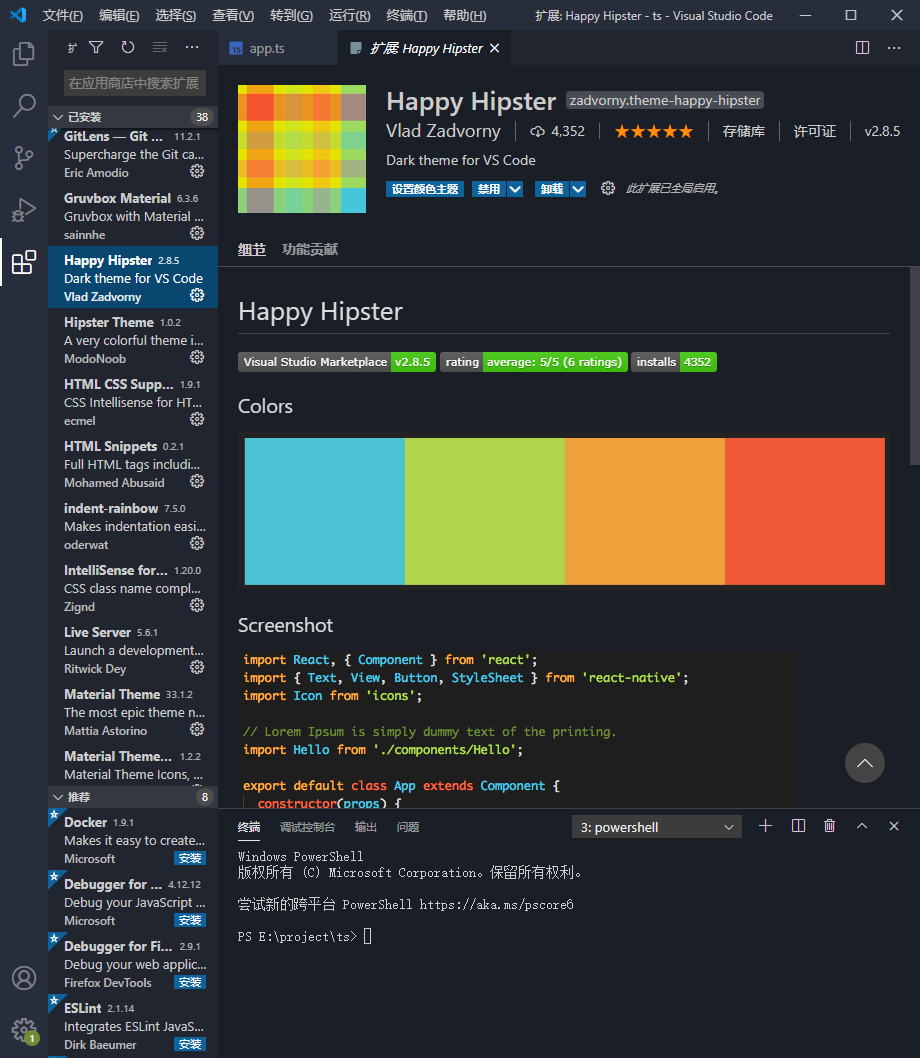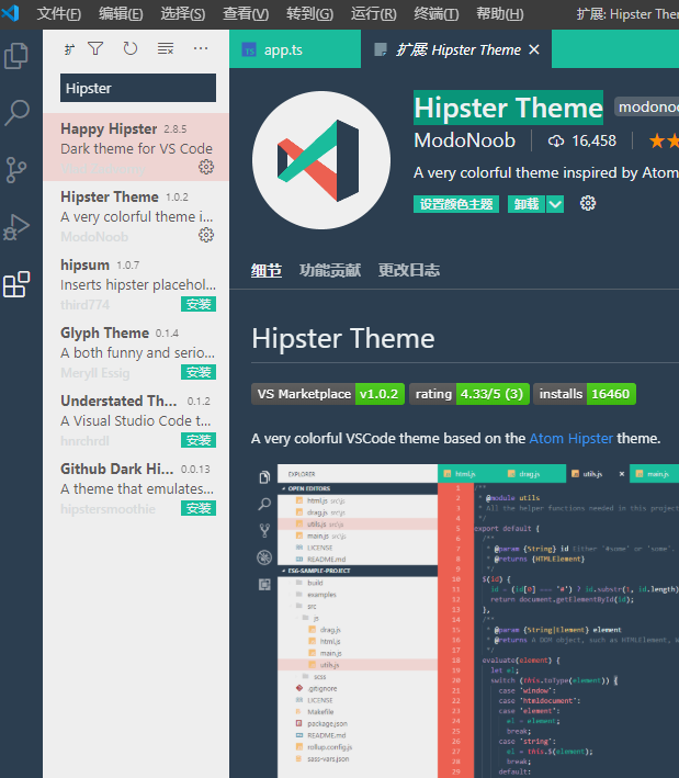 Happy Hipster 这是一款暗色的主题,但是这不是重点,重点是他的字的配色很舒服