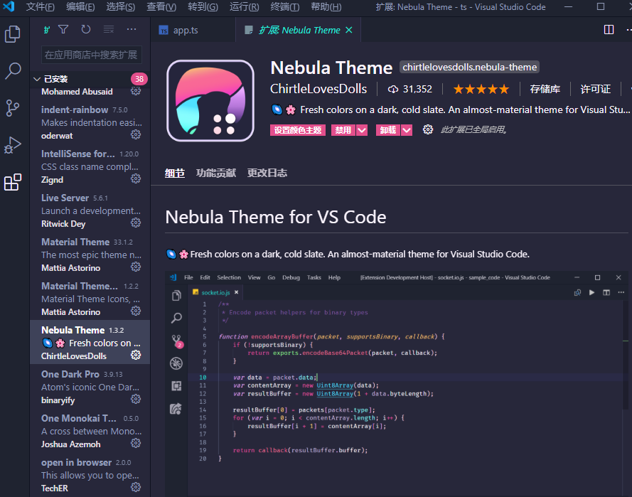 Nebula Theme 这是暗粉色主题,个人认为是比较骚的一款了,我大多数时间都在用这款
