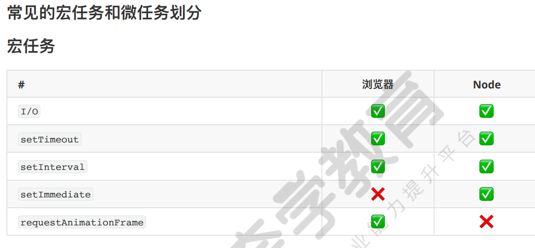 宏任务是JavaScript中最原始的异步任务,包括setTimeout、setInterVal、AJAX等,在代码执⾏环境中按照同步代 码的顺序,逐个进⼊⼯作线程挂起,再按照异步任务到达的时间节点,逐个进⼊异步任务队列,最终按照队列中的 顺序进⼊函数执⾏栈进⾏执⾏。