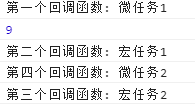 Promise.resolve().then(()=> { console.log('第一个回调函数: 微任务1') setTimeout(()=>{console.log("第三个回调函数: 宏任务2")},0) }) setTimeout(()=>{ console.log("第二个回调函数: 宏任务1") Promise.resolve().then(()=>{console.log("第四个回调函数: 微任务2")}) },0)