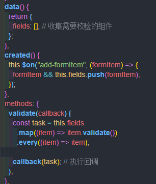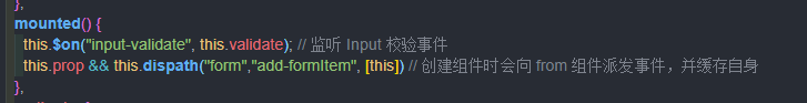 现在为了解耦,改变了思路,当 form-item 注册的时候向调用 dispath 派发事件,其实是父级给自己传事件,并传入自身(子组件)