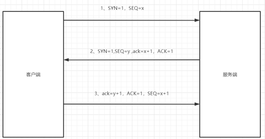 ack=y+1,应答信号,在服务端发送的SEQ上加一