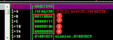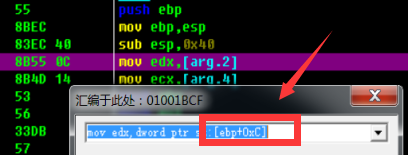 跳转到消息处理函数后,找到第二个参数(ebp+0xc)