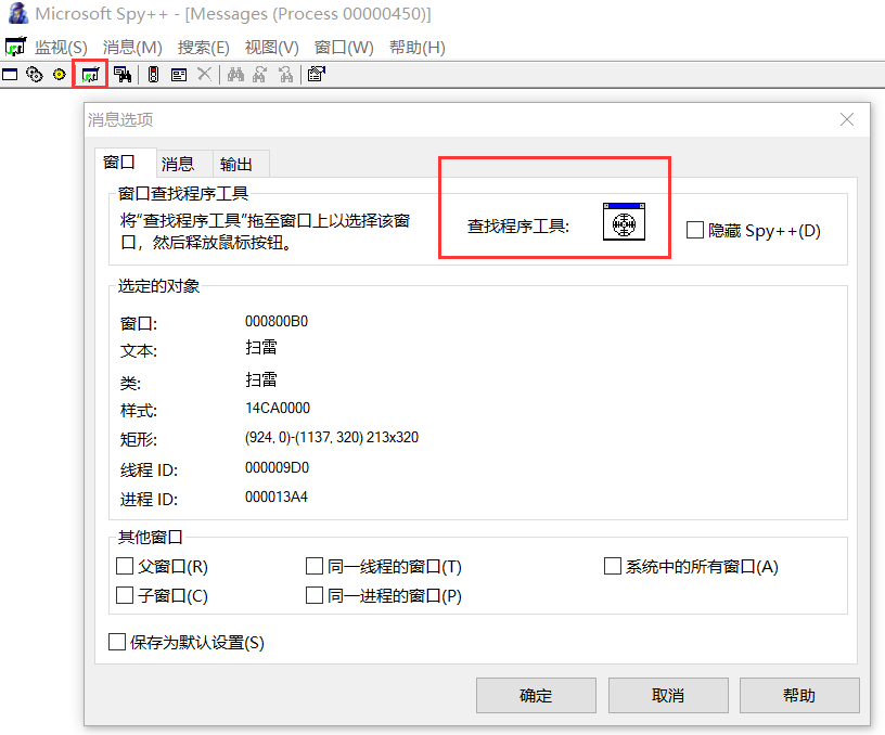 HWND hwnd = ::FindWindow(NULL,_T("扫雷")); //寻找进程句柄