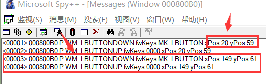 然后就能得到消息类型与点击的坐标,在扫雷中就可以找到第一个位置与最后一个位置的坐标就可以得到每个位置的坐标