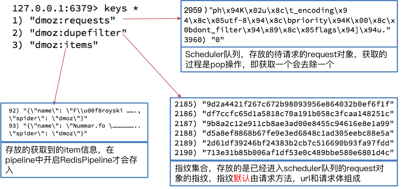 DUPEFILTER_CLASS = "scrapy_redis.dupefilter.RFPDupeFilter" SCHEDULER = "scrapy_redis.scheduler.Scheduler" SCHEDULER_PERSIST = True ITEM_PIPELINES = { 'example.pipelines.ExamplePipeline': 300, 'scrapy_redis.pipelines.RedisPipeline': 400, }