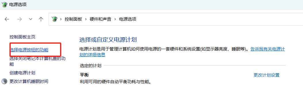 3、在电源选项处,点击 “更改电源按钮的功能”;