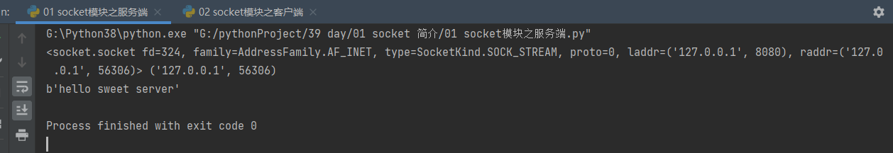 client.send(b'hello sweet server') # 朝服务端发送数据