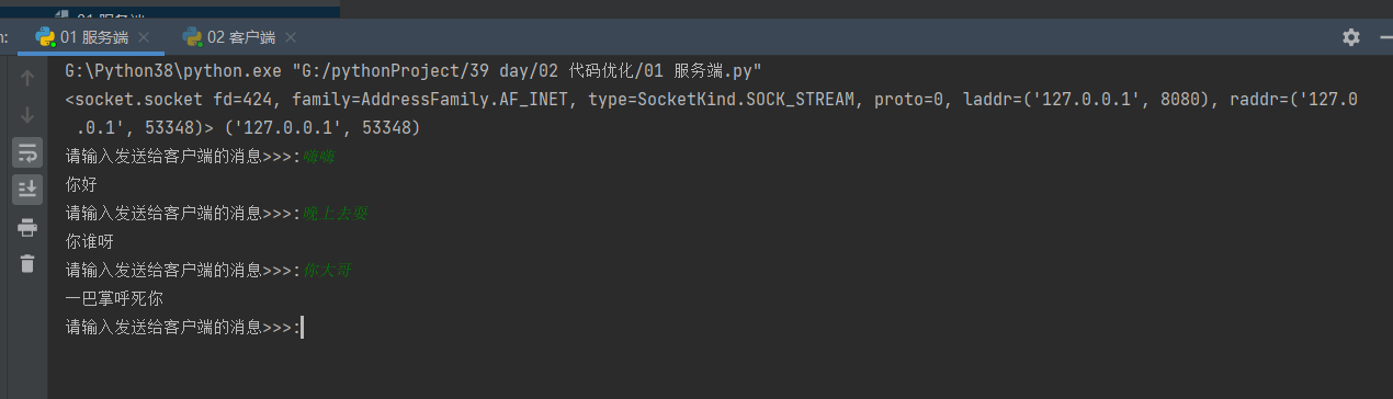 msg = input('请输入发送给客户端的消息>>>:').strip()