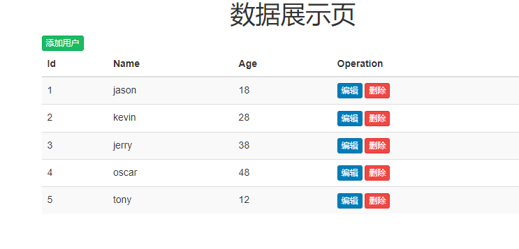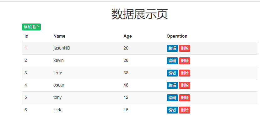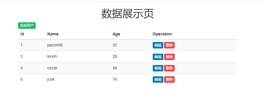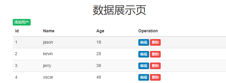 步骤三:在html文件中进行页面格式、新增、修改及删除按钮设置(用a标签)